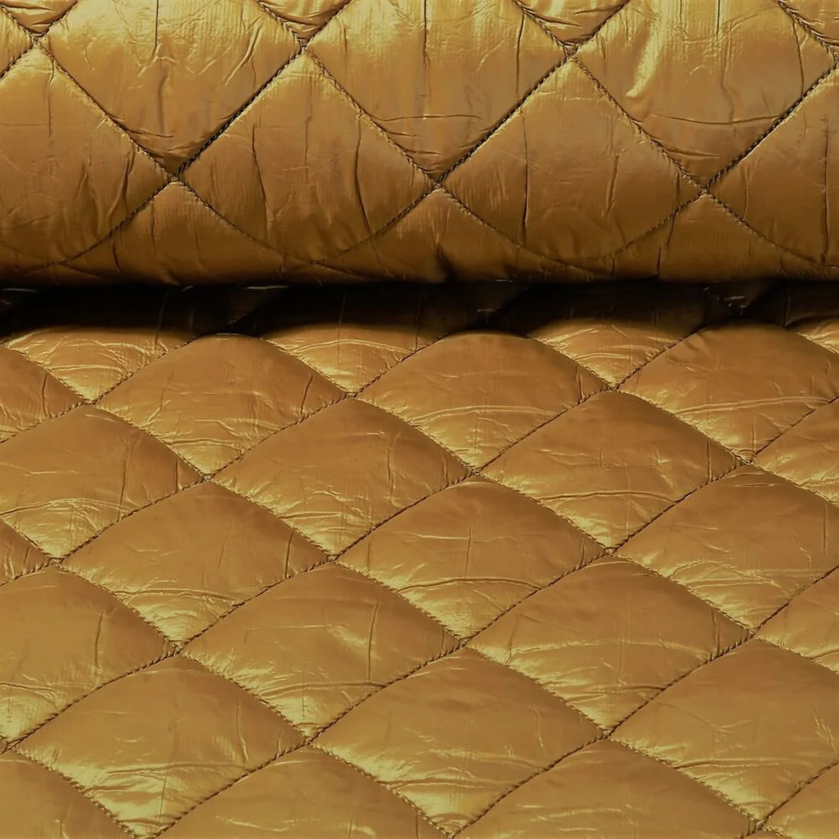 Voluminöser Steppstoff mit Rautenmuster (7 x 7 cm) und leicht glänzender Außenseite. Das wasserabweisende Material eignet sich gut zum Nähen von Outdoorjacken, Westen und Mänteln. Zwischen dem gleichfarbigen Außen- und Innenstoff ist eine weiche Wattierung eingearbeitet, ein zusätzliches Futter ist daher nicht nötig.