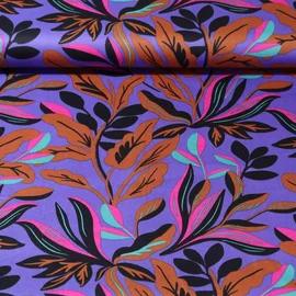 Baumwollsatin "Lush Leaves" Lila