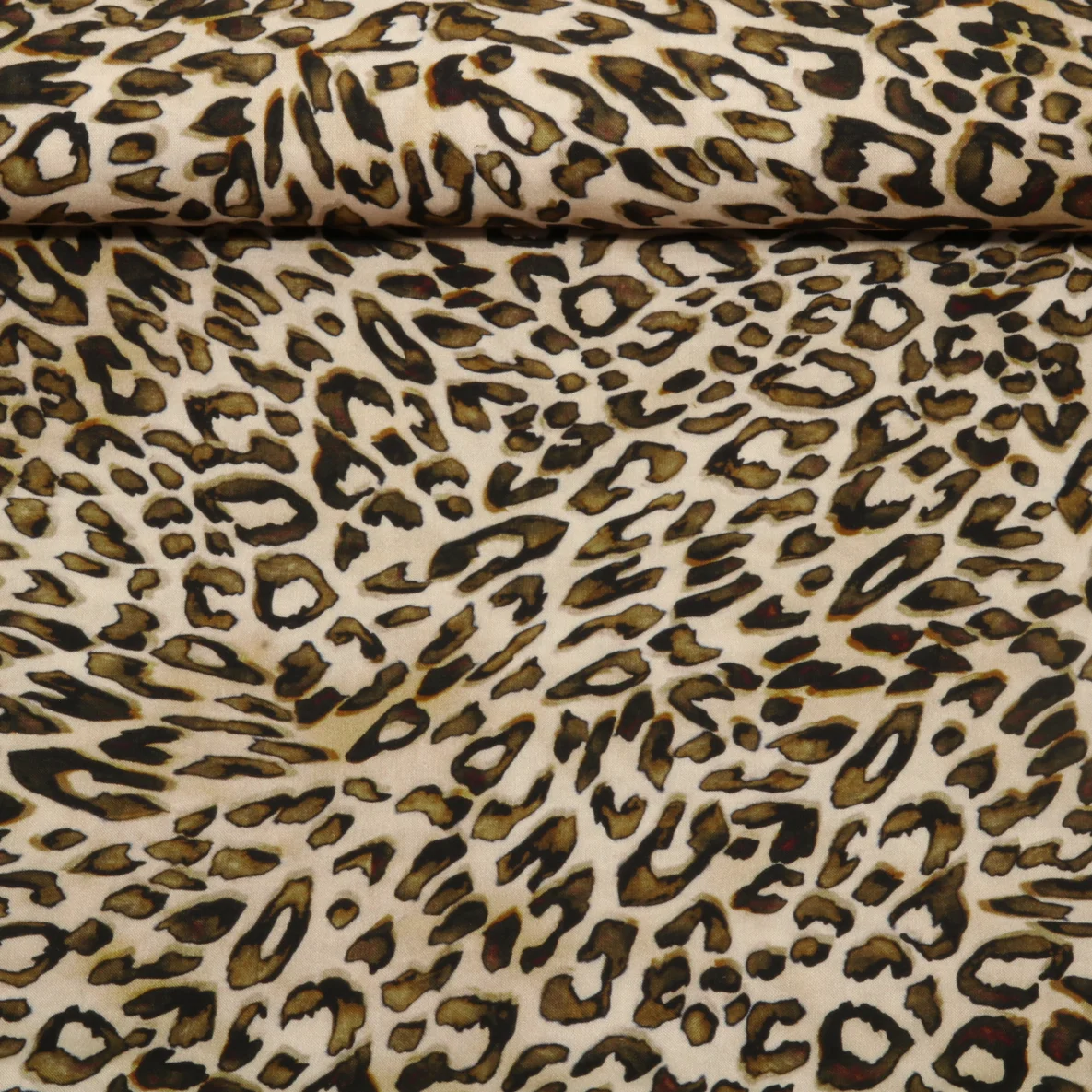 Diese Viskose Webware mit Leo-Muster eignet sich super zum Nähen von leichten Blusen, Röcken und Kleidern, z.B. mit unserer Latzhose "Easy". Viskose ist dank ihrer hohen Feuchtigkeitsaufnahme wunderbar für deine Sommer-Nähprojekte geeignet!