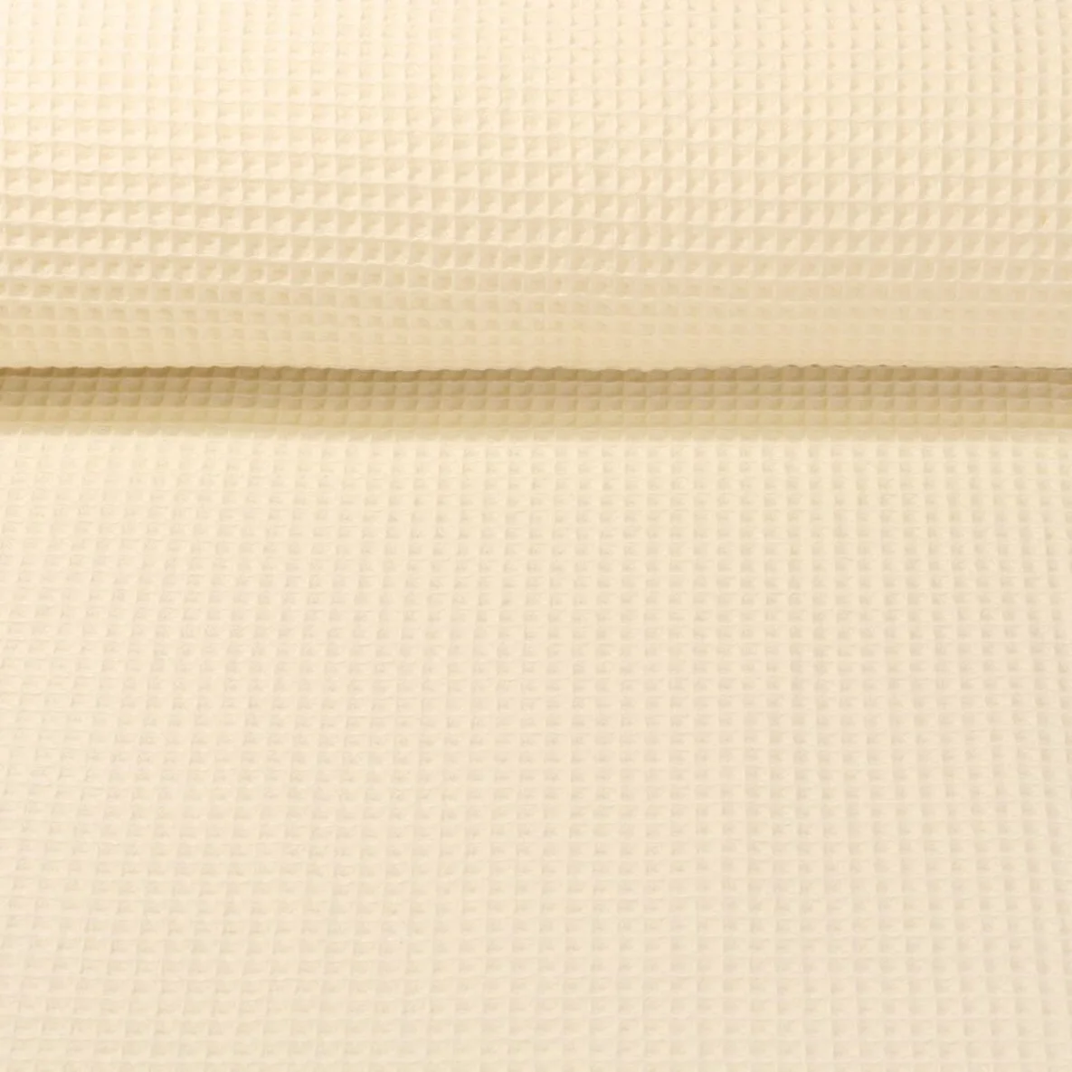 Dieser schöne Waffelpiqué ist wunderbar pflegeleicht und strapazierfähig. Die für den Stoff typische Wabenstruktur sorgt für eine hervorragende Feuchtigkeitsaufnahme. Damit eignet sich Waffelpiqué sehr gut für Geschirr- und Handtücher, Decken für Babys sowie Bademäntel, z.B. zum Nähen unseres Bademantel-Schnittmusters "Gina".