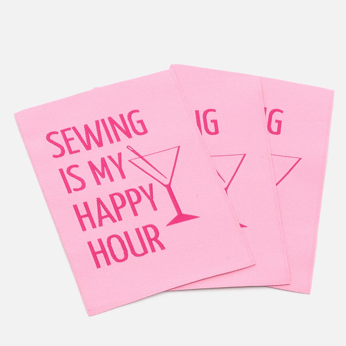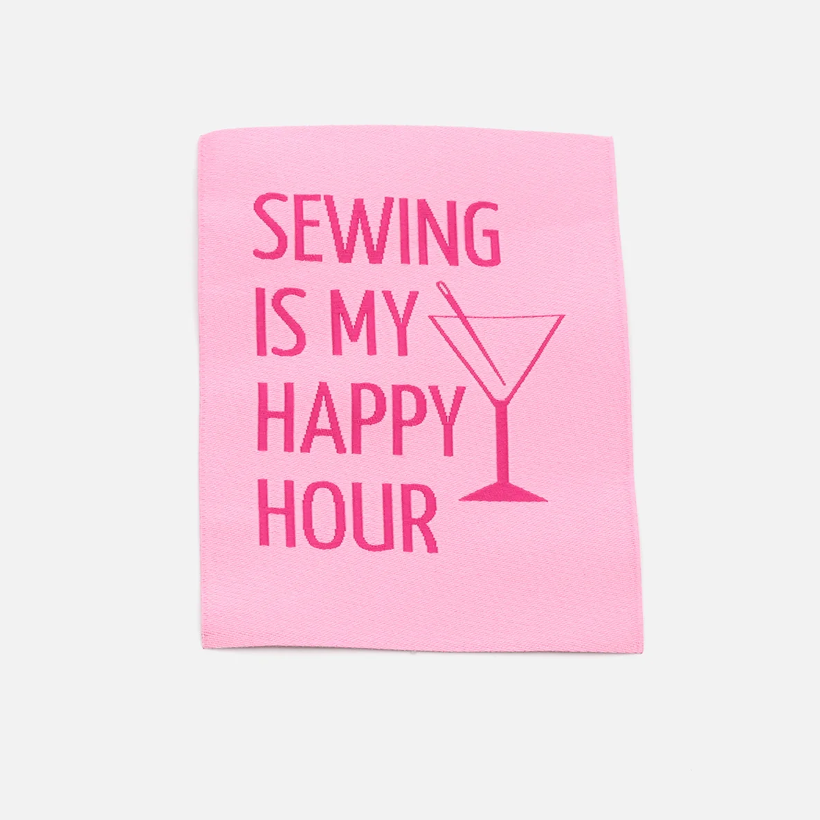 Mit dem XL-Webetikett "Sewing is my happy hour" verleihst du deinen Nähprojekten eine persönliche Note. Die Kanten der Labels sind versiegelt, sodass sie nicht ausfransen und nicht umgeschlagen werden müssen. Die Etiketten lassen sich mühelos mit einem Geradstich rundum aufnähen.